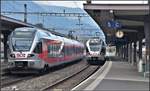 Drei SOB RABe 526 Flirt vereint beim Verlassen von Solothurn-HB am 9. Januar 2019.