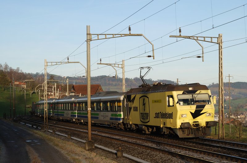 S40 nach Rapperswil verlässt den Bahnhof Einsiedeln. Einsiedeln, 11.01.2021