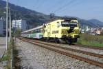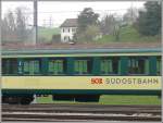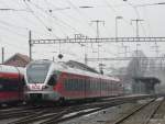 SOB - E-Lok Re 4/4 456 092 mit Vollwerbung unterwegs mit dem Voralpen Express im Bahnhofsareal von Samstagern am 15.02.2008