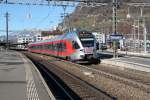 S40 nach Rapperswil verlässt den Bahnhof Einsiedeln. Einsiedeln, 11.01.2021