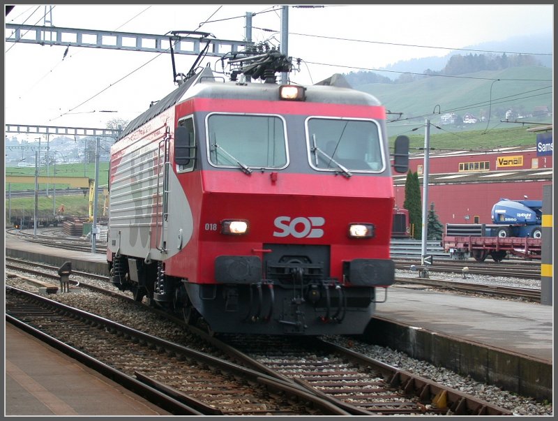 Re 446 018 ex SBB Re 4/4 IV in Samstagern. (10.11.2006)