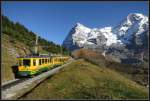 He 2/2 31 der WAB schiebt unter anderem einen Container für die Jungfraubahn Richtung Kleine Scheidegg. (13.11.2012)