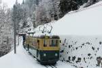 Der WAB BDhe 4/4 121 fährt am 24. Juni 2015 unterhalb der Kleinen Scheidegg talwärts in Richtung Lauterbrunnen. Ein paar Hundert Meter weiter hinten folgt mit Pano 149 der neuste Zug der WAB, abgeliefert ca. Anfang Mai 2015.