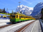 WAB - Triebwagen BDeh 4/8 132 mit BDeh 4/8 + Steuerwagen im Bahnhof Grindelwald am 06.05.2016