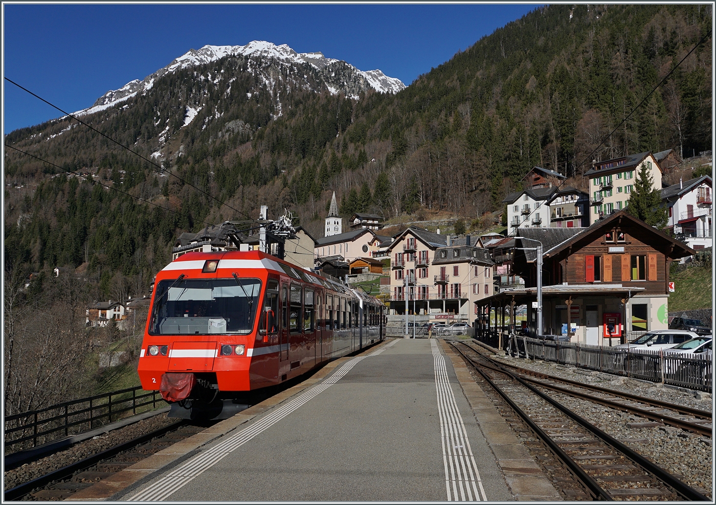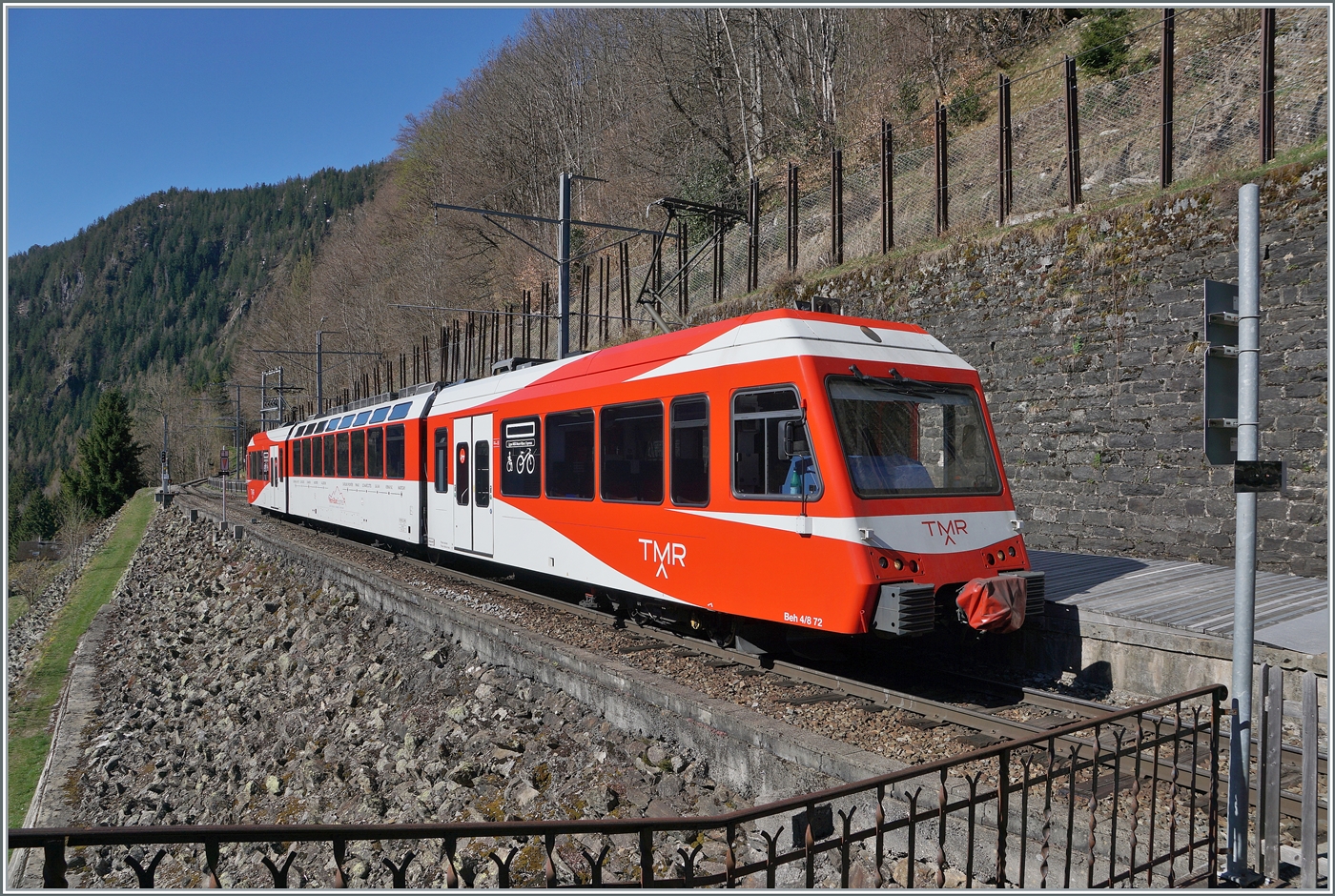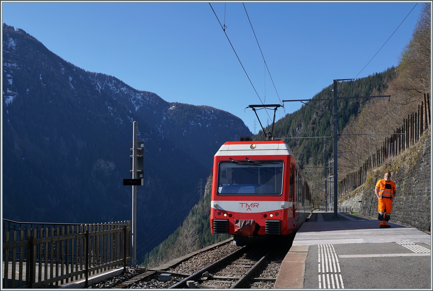 Der TMR / MC BDeh 4/4 N° 8 (TSI Nr: 90 85 838 0008-5) im Baustellenbedingten Pendel-Verkehr Vernayaz MC - Martigny - Vernayaz MC beim Aufenthalt in Vernayaz MC. Dieser Aufenthalt dauerte eine guten halbe Stunde, dann fuhr der Triebwagen die 4.8 Kilometer nach Martiny und kehrte nach einem kurzen Aufenthalt von dort wieder zurück. Die drei ersten Triebwagen wurden als ABDeh 4/4 N° 4, N° 5 und N° 6 im Jahre 1957 ausgeliefert, die beiden ABDeh 4/4 N° 7 und N° 8 folgten 1964. Nach dem Wegfall der 1. Klasse bei der MC wurde sie 1980 in BDeh 4/4 umbezeichnet.
