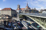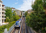 Der TL Be 8/8 252 der Linie M2 bei der Haltestelle La Sallaz, wo die Gleisanlagen auch ein Abstellen der Züge erlauben. Zudem wenden einige Züge hier.