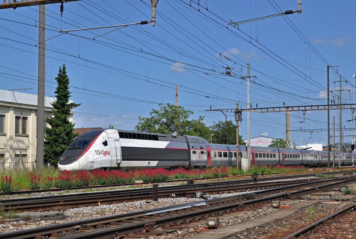 TGV Lyria 4406 durchfährt den Bahnhof Pratteln.