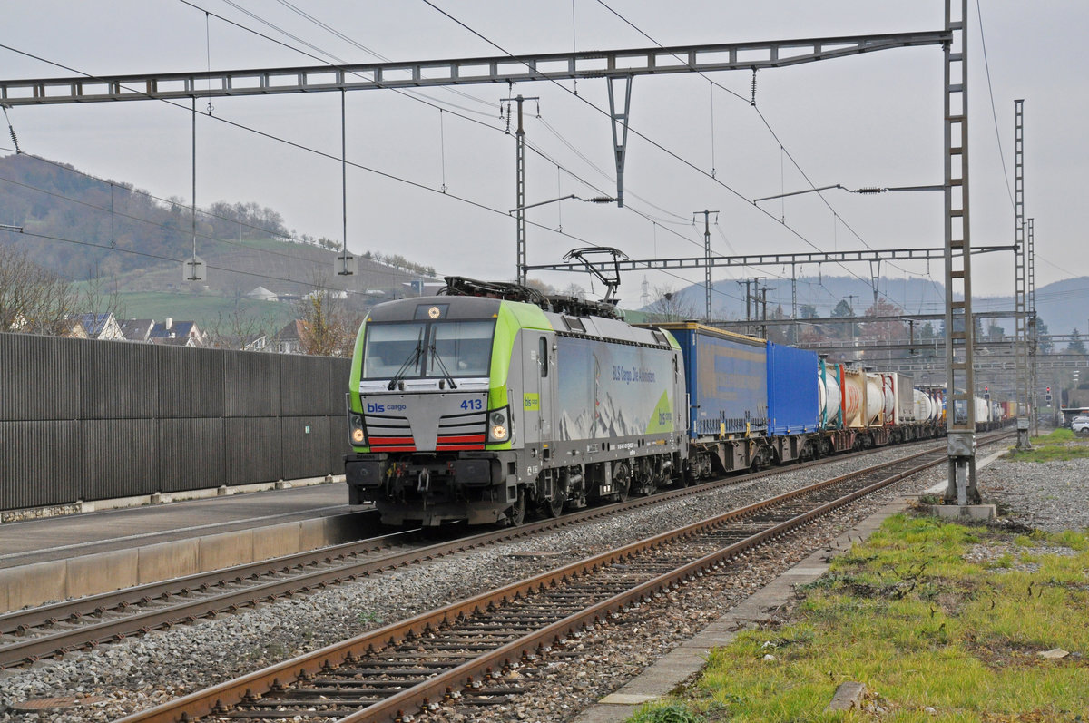 Siemens Vectron 475 413-1 der BLS durchfährt den Bahnhof Gelterkinden.