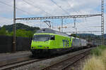 Doppeltraktion, mit den BLS Loks 465 001-6 und 475 407-3 durchfährt den Bahnhof Gelterkinden. Die Aufnahme stammt vom 07.07.2022.