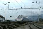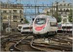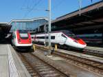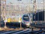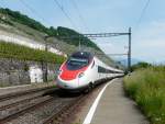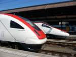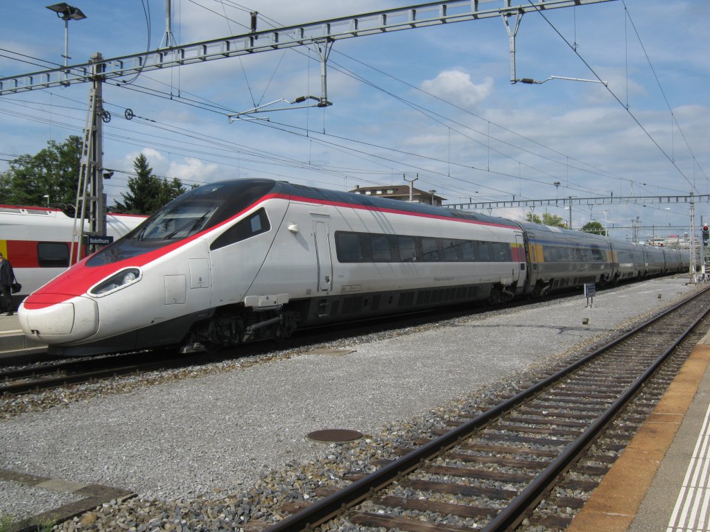 ETR 610 007: Der weisse Steuerwagen ist ein Ersatzwagen, da der vorherige Steuerwagen bei einem Rangierunfall in Deutschland schwer beschädigt wurde. Der Ersatzsteuerwagen ist bereits in den neuen SBB Farben lackiert, der Rest der Komposition hat noch die Cisalpino Anschriften, Solothurn, 30.07.2011.