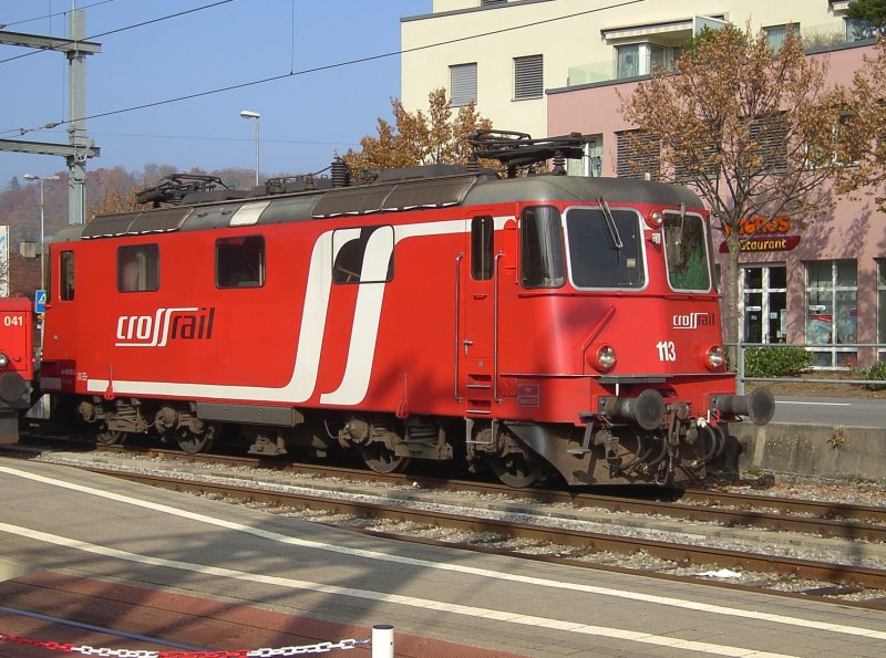 Die Re 4/4 113 von CrossRaiel am 03.11.2007 in Spiez.