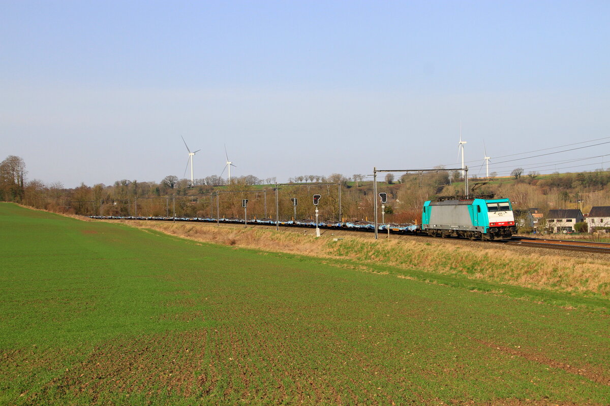 Belgiën Lok 186 504 vom Lineas zieht einem BASFzug vom Antwerpen nach Ludwigshafen in Wonck 26/2/2026