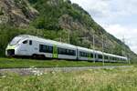 Der BLS RABe 528 105 steht bei der RegionAlps im Einsatz, da diese durch einen erfreulich starken Fahrgastzuwachs mit Kapazitätsproblemen zu kämpfen hat.