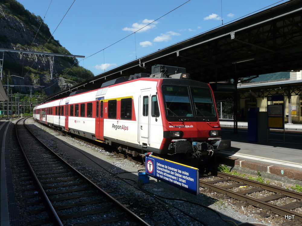 SBB /RegionAlps -Steuerwagen ABt 50 85 39-43 951-5 an der Spitze eines Regio im Bahnhof von St.Maurice am 23.06.2012