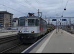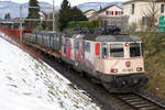 Werbe Lok Re 420 262-8 durchfährt den Bahnhof Pratteln. Die Aufnahme stammt vom 04.02.2021.