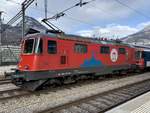 SBB C Re 402 307 mit der Werbung  Profitieren mit der Spartageskarte  am 26.2.21 mit einem Güterzug in Olten.