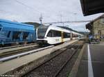 . THURBO Stadler GTW 2/6 (RABe 526) auf der Brücke am Rheinfall nahe Schaffhausen. 06.09.2017 (Jeanny)
