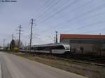 RABe 526 762-0 am 21.4.2010 in Koblenz AG. Auch im tiefen Kanton Aargau konnte Thurbo Fuss fassen. Dies nicht nur mit der S41 nach Winterthur, sondern auch mit Regios Koblenz - Baden.