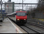 SBB - Steuerwagen Bt 50 85 28-94 965-5 an der Spitze eines IC bei der durchfahrt im Bahnhof Aarau am 22.02.2026