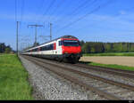 Ein Zug der SBB verlässt am 27.05.2023 auf der Fahrt Richtung Frick den kurzen Tunnel bei Villmergen.