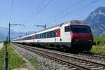 Ein Zug der SBB verlässt am 27.05.2023 auf der Fahrt Richtung Frick den kurzen Tunnel bei Villmergen.