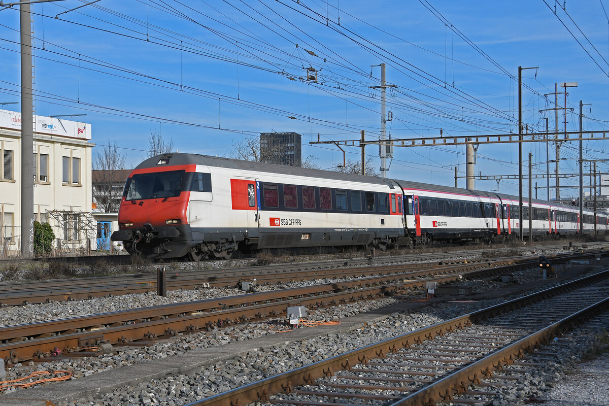 IC Steuerwagen Bt 50 85 28-94 934-2 durchfährt am 05.02.2024 den Bahnhof Pratteln.