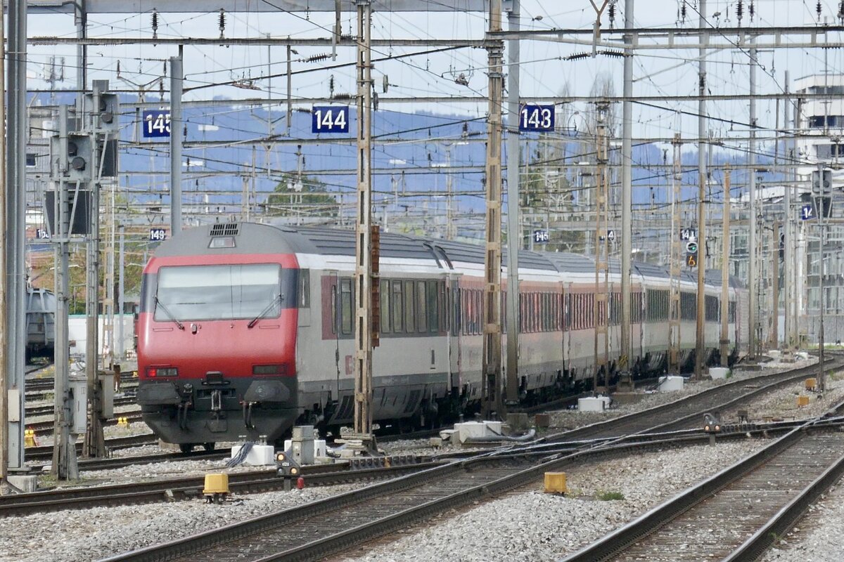 Nachschuss auf einen IC 61 nach Basel SBB der am 5.4.24 den Bahnhof Thun verlassen hat.