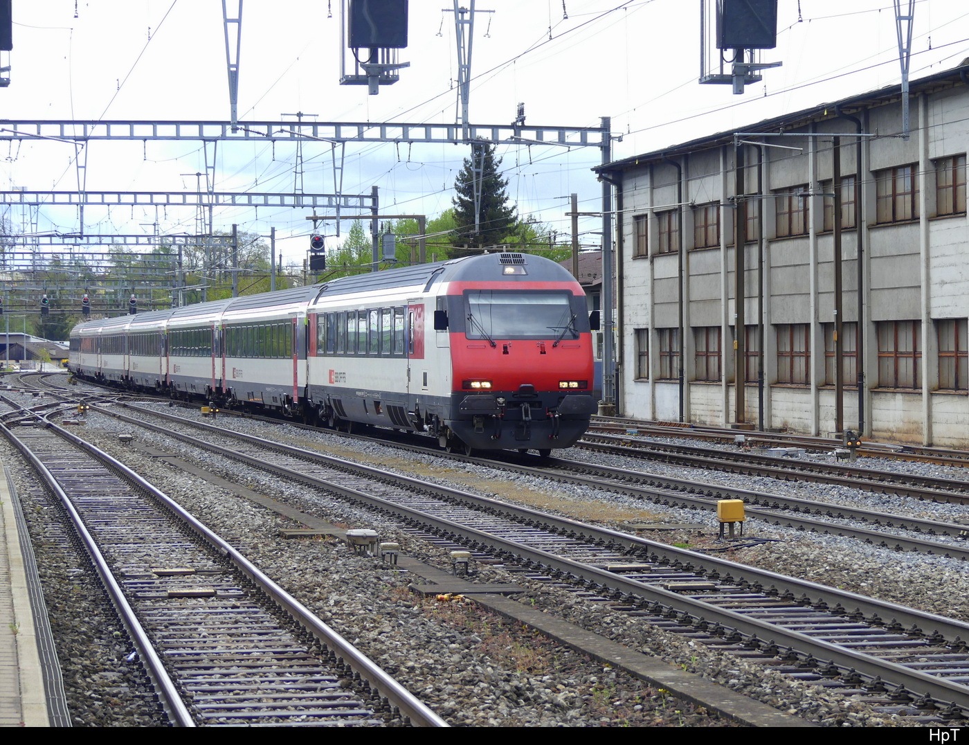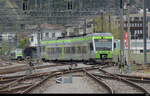 SBB - Einfahrt eines Extrazug für Fussballfans von YB (Bern) im Bhf. Burgdorf an der Front der Steuerwagen Bt 50 85 28-94 986-2 am 21.04.2024