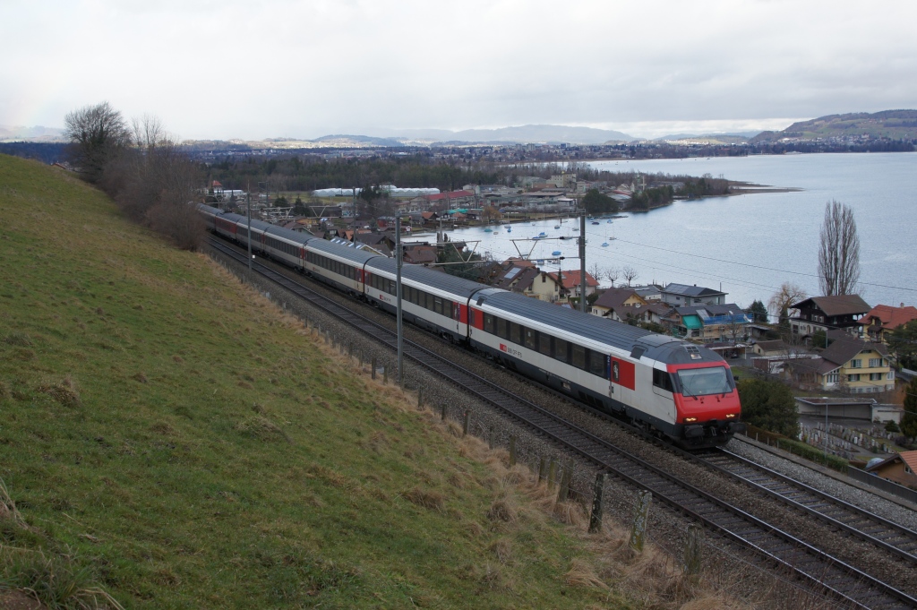 Der IC 967 befindet sich am 22.1.12 zwischen Einigen und Spiez.
