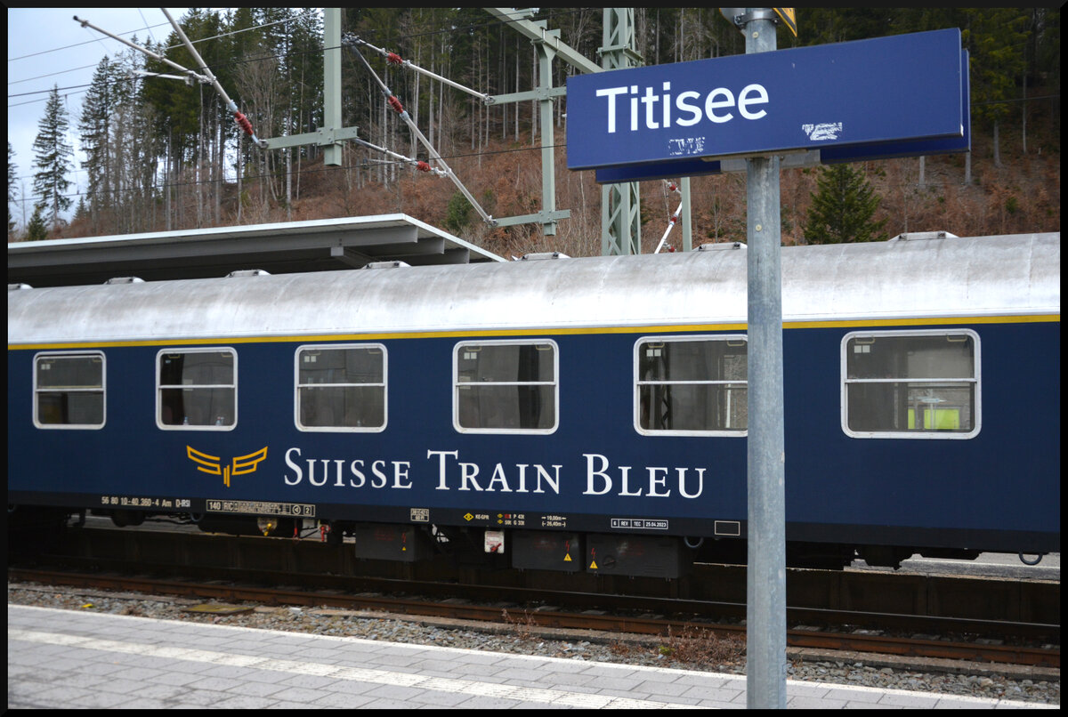 Zum Jahreswechsel veranstaltete TR Trans Rail – ZRT Bahnreisen (Schweiz) vom 29.12.2025 bis 02.01.2026 eine Silvesterfahrt im Extrazug von Bern nach Leipzig. Der Sonderzug, gebildet aus je drei Waggons des „Prestige Continental Express“ und „Suisse Train Bleu“, wurde von der schweizerischen Re 4/4 11387 alias 421 387 (91 85 4421 387-2 CH-IRSI) befördert. Hier der Reisezugwagen „Suisse Train Bleu“ 56 80 10-40 360-4 Am D-IRSI.