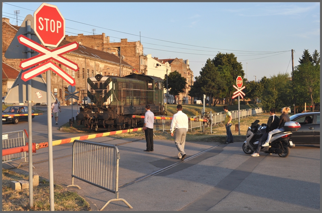 Vom Belgrader Hauptbahnhof gibts ein Anschlussgleis der Save entlang zum Donauhafen. 641 324 verschafft sich Gehör mit lautem Hupen und ist für Belgrader Verhältnisse ziemlich schnell unterwegs. (03.07.2011)