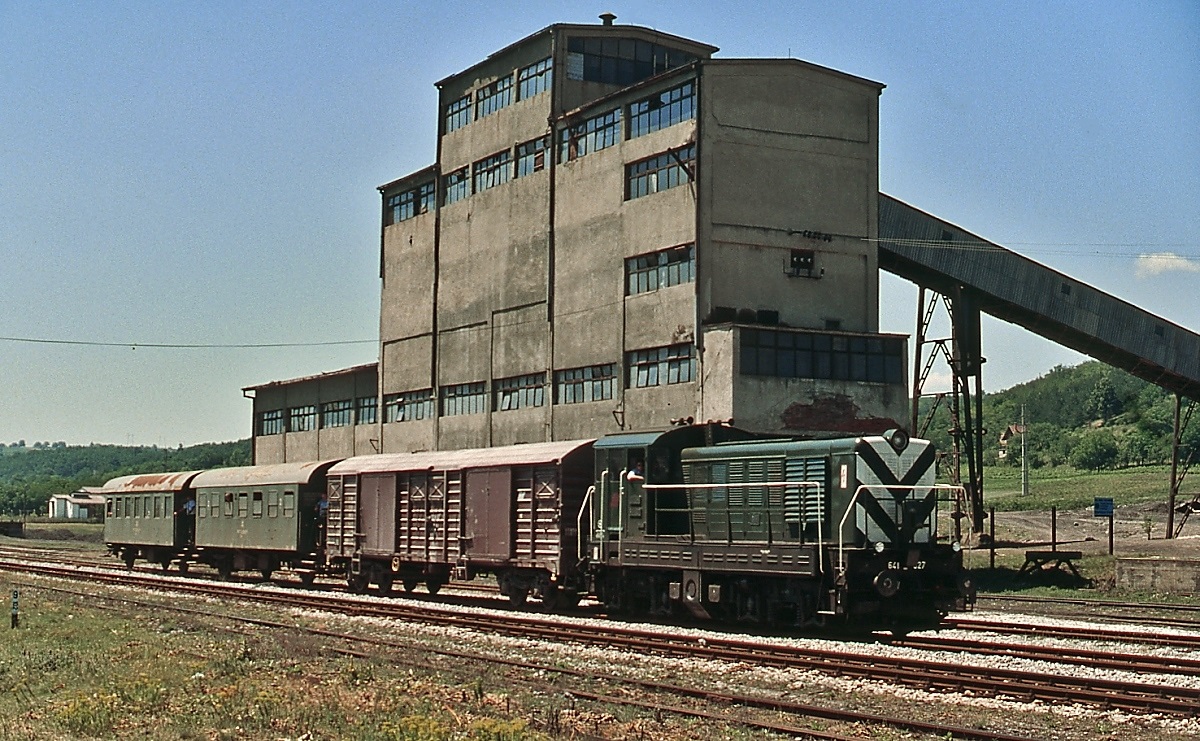 Im Juni 2000 trifft die 641 027 der JZ mit einem Personenzug nach Zajecar in Grljan ein. Die Lokomotive wurde von Ganz-MAVAG geliefert und entspricht der MAV-Baureihe M 44.