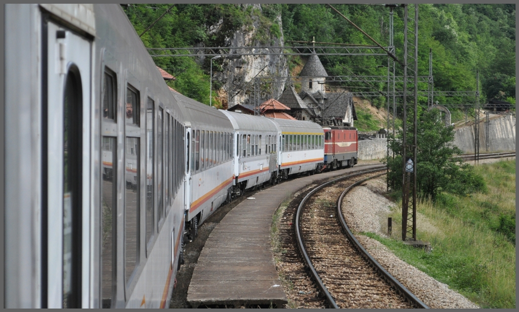 350 008-9 – EC 271 „Avala“ aus Prag fährt nach Lokwechsel in Bratislava hl. st./Preßburg mit Verspätung weiter in Richtung ¦túrovo – Budapest – Beograd/Belgrad; 29.04.2012