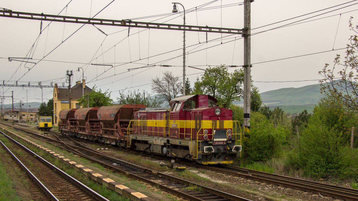 Am 23. April 2019 war 730 629-3 mit einem kurzen Zug in Kuzmice unterwegs.
