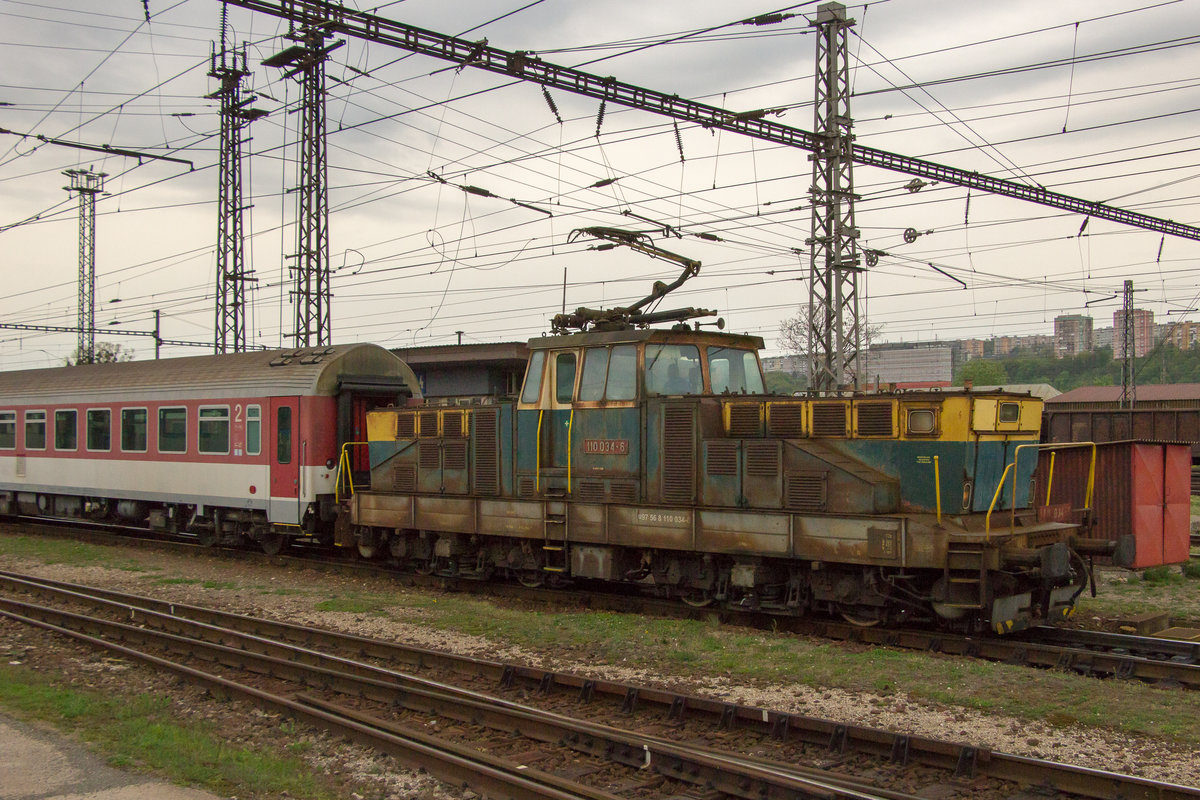 Fahrender Schrott  war am 23. April 2019 in Kosice zu sehen. Nein, es war 110 034-6 beim Rangieren!! Wetter mies, Lok toll!!