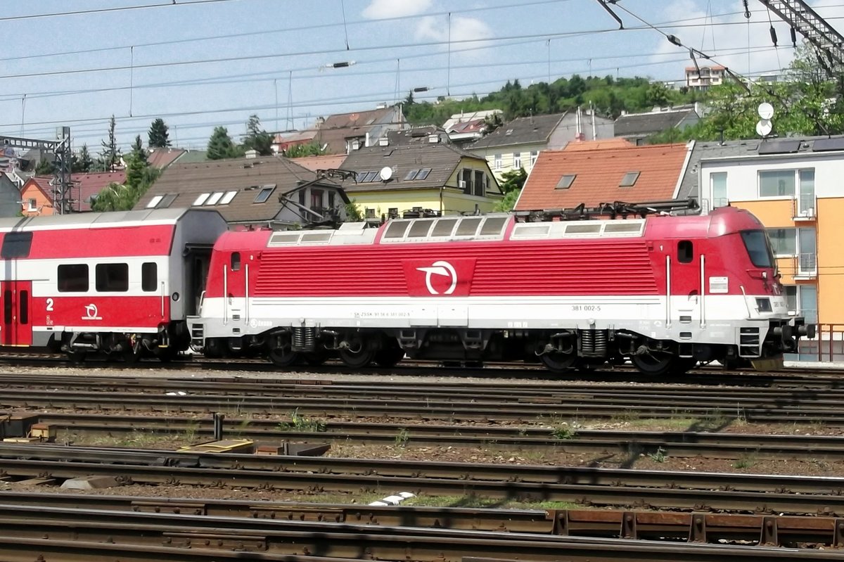 Am Sylvester 2016 verlässt 381 001 mit ein Regionalzug Bratislava hl.st.