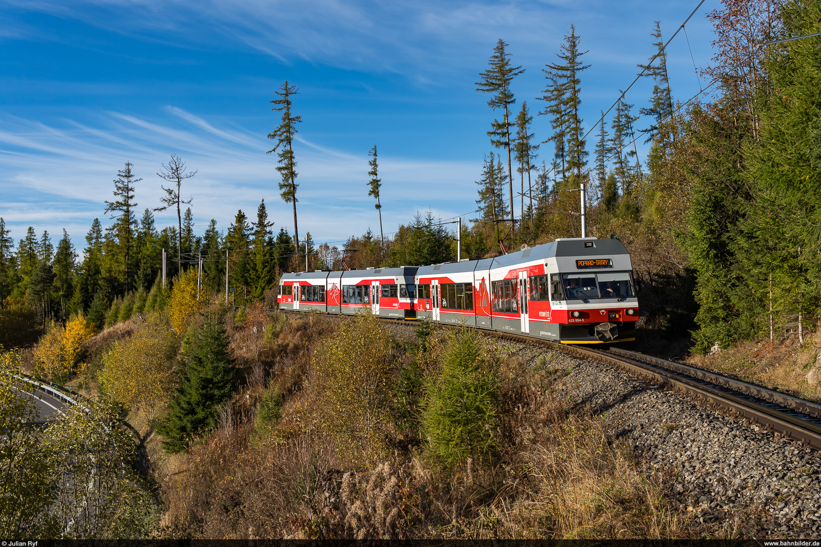 Die Zahnradbahn schweizerischer Abstammung von Štrba nach Štrbské Pleso fährt mit dem System Abt. (03.06.2014)