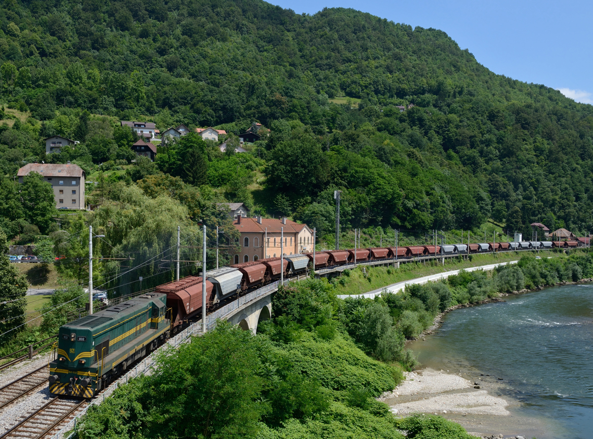 Durch martialisches Donnern kündigten sich die sechzehn Zylinder der 661 032 schon Augenblick vor dem Erscheinen des schweren Getreidezuges aus Dovoba an welchen , ich am  21. Juli 2018 in Hrastnik an der Save fotografierte.