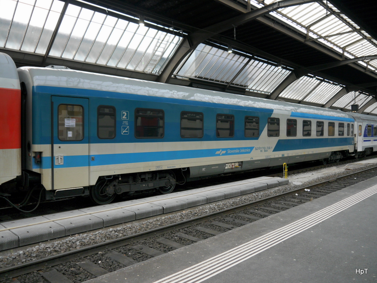 Der Zug besteht in der Regel immer aus zwei 2. Klasse-Wagen der HŽ, zwei 2. Klasse-Wagen der SŽ, sowie einem gemischtklassigen Wagen der SŽ.