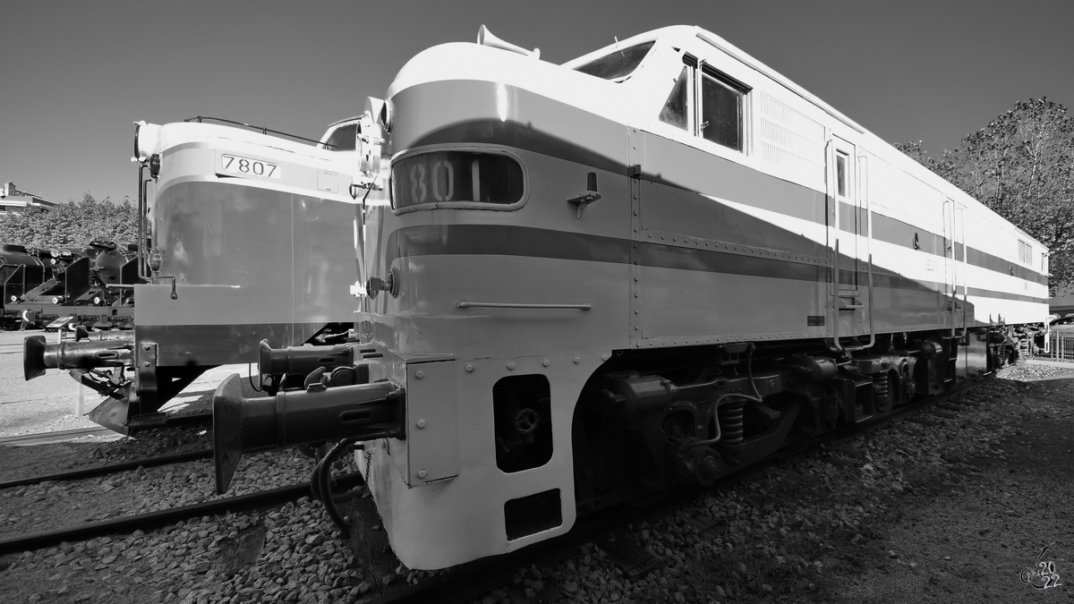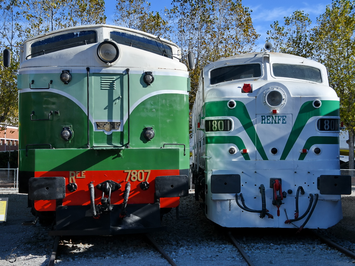 Im Katalanischen Eisenbahnmuseum ist die 1958 gebaute Renfe 1801 "Marilyn" (318-001) ausgestellt. (Vilanova i la Geltrú, November 2022)