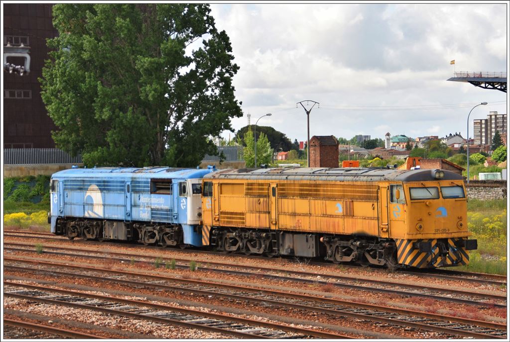 Zwei Oldtimer, die 321 005-1 und die 321 073-9 , stehen taenlos herum auf den Abstellgeleisen neben dem neuen Bahnhof. (25.05.2016)