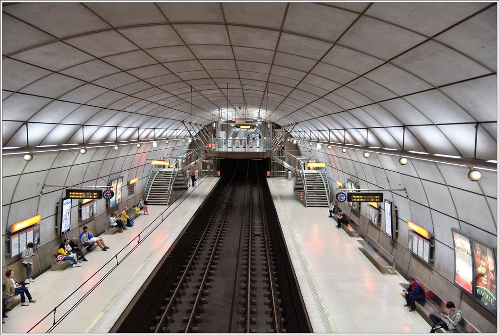 Originelle Metrostation Moyua: um zur Metro zu gelangen, muss man dieser Figur ins Maul laufen. Bilbao, 5.9.2025