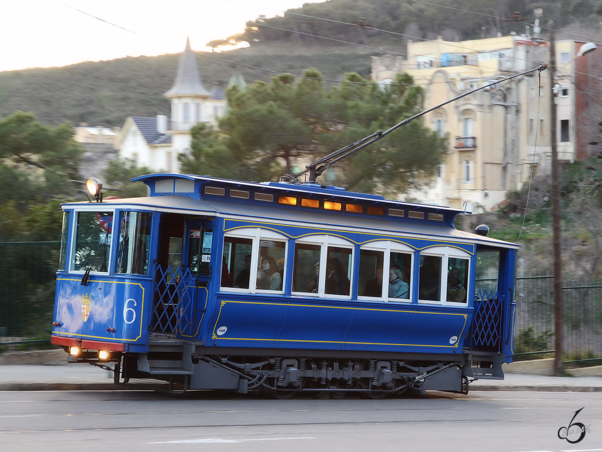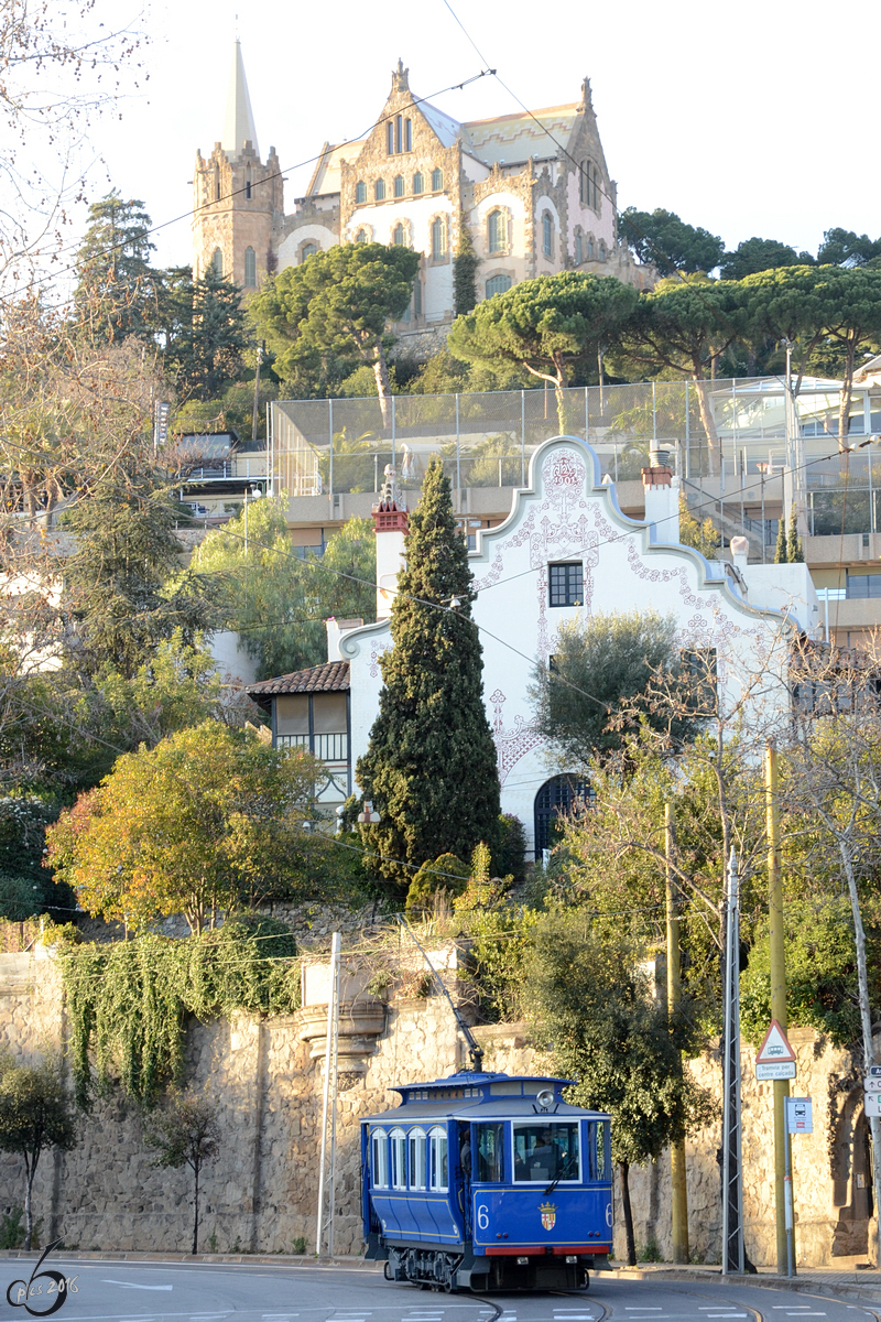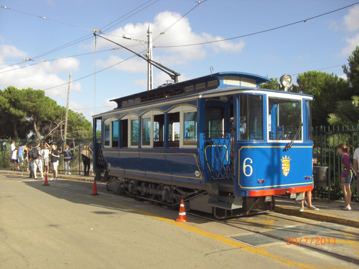 ATM-Straßenbahn 02 der Linie T2 am 08.03.2008 in der Endhaltestelle Sant Marti de l'Erm. Eine Tram steht auf dem Satellitenbild in der Haltestelle.