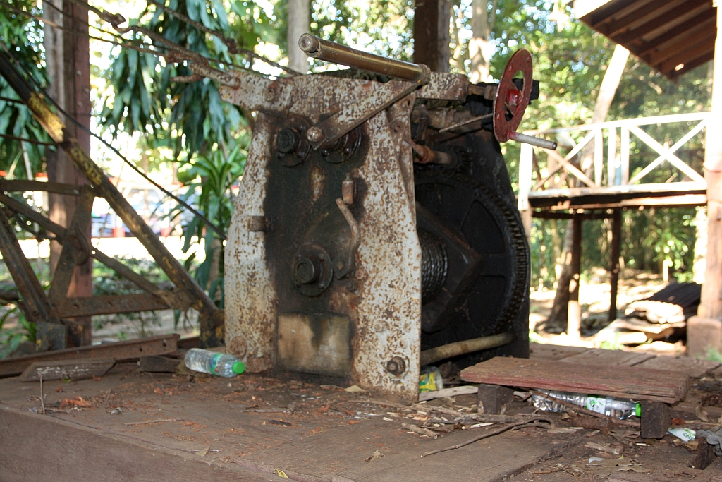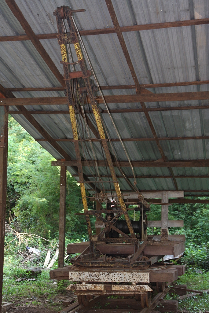 Dieselkran No. 1 (Tokyu Car Mfg. Co. Ltd./Japan, Bauj. 1956) aus ungewöhnlicher Perspektive am 19.Mai 2018 im Depot Uttaradit.
