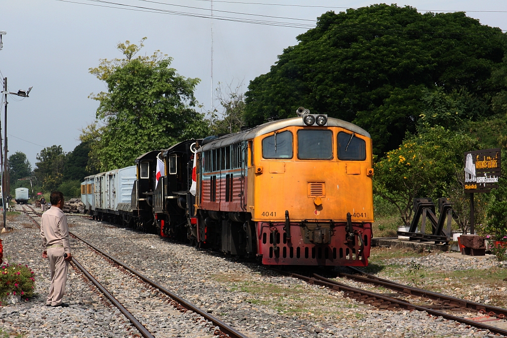 GEK 4034 (Co'Co', de, General Electric, Bj.1963, Fab.Nr. 34883) am 11.März 2012 mit dem ORD 258 nach Bangkok-Thon Buri im Bf. Nam Tok.
