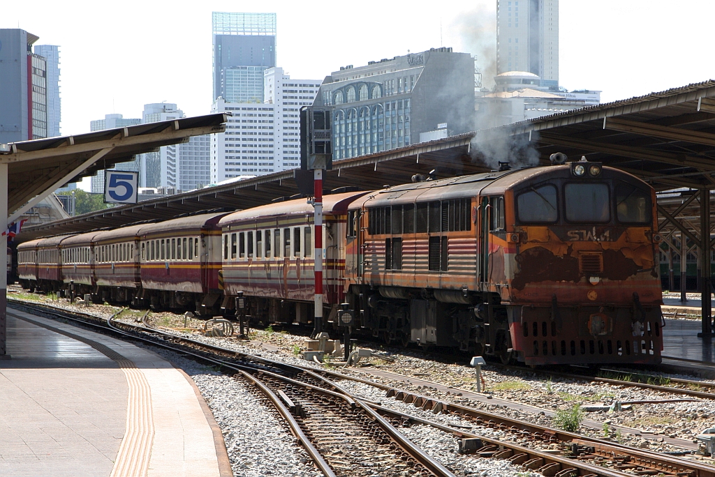 GEK 4005 (Co'Co', de, General Electric, Bj.1963, Fab.Nr. 34854) fährt am 04.Dezember 2025 mit dem ORD 211 (Hua Lamphong - Taphan Hin) durch die SRTET Wat Samian Nari Station (RN03). Karl Seltenhammer