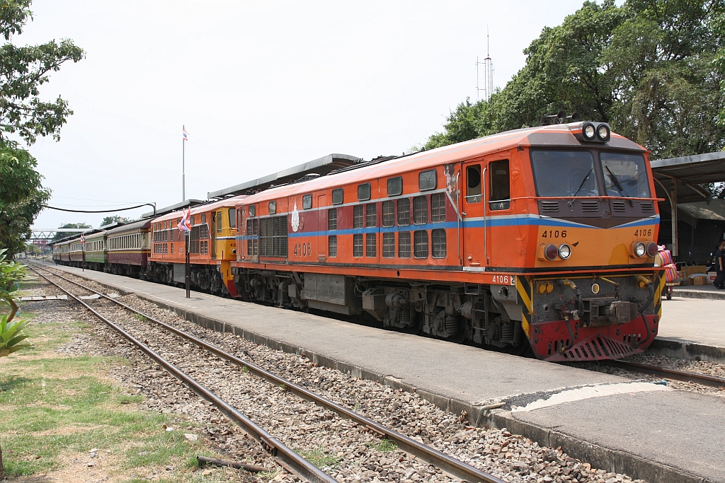 ALS 4106 (Co'Co', de, Alsthom, Bj.1974) und AHK 4224 (Co'Co', de, Krupp, Bj.1980, Fab.Nr. K-5486) am 25.März 2017 mit dem ORD 209 im Bf. Bang Sue.