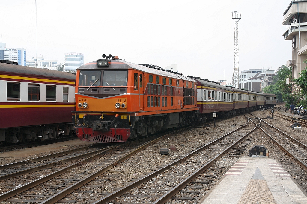 ALS 4110 (Co'Co', de, Alsthom, Bj.1974) fährt am 27.März 2017 in Bangkok Hua Lamphong ein.