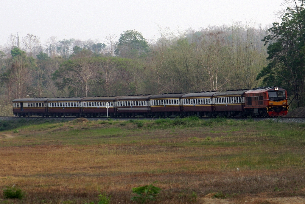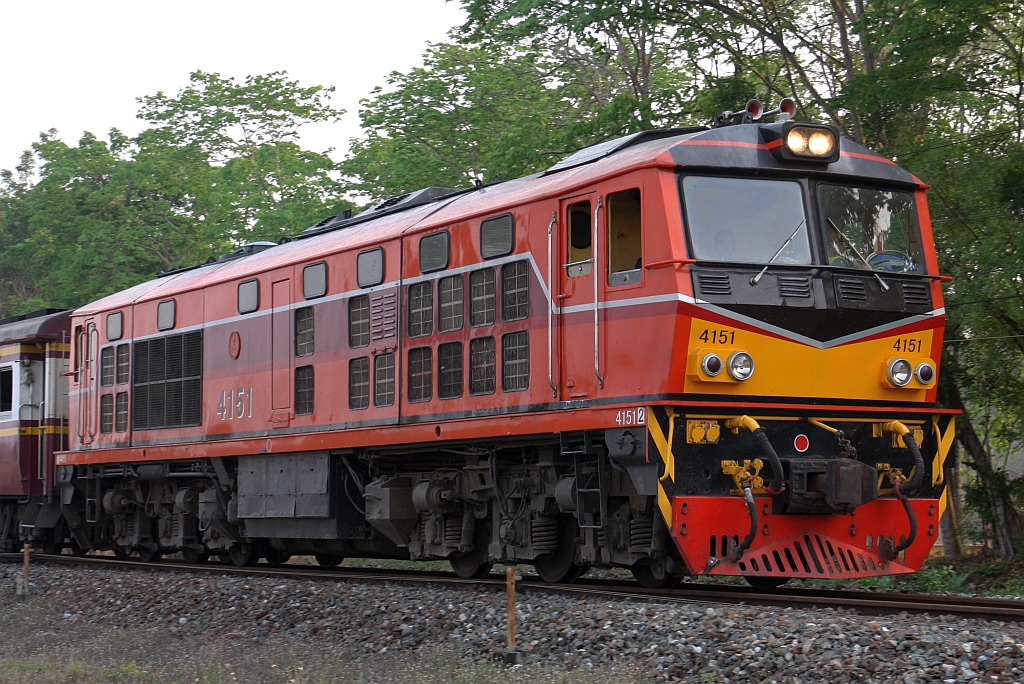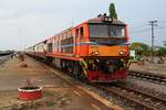 ALS 4108 (Co'Co', de, Alsthom, Bj.1974) am 29.November 2025 vor dem ORD 259 (Thon Buri - Nam Tok) in der Wang Pho Station.