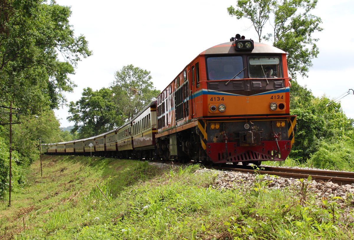 Die ALS 4134 und die Nr. 258 (Namtok- Thonburi) erreichen in kürze die River Kwai Bridge und den Bahnhof Saphan Kwai Yai.